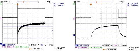因為電流有些輕微依賴MOSFET的導(dǎo)通電阻,所以有必要在電流接近目標(biāo)閃光電流時測量 PFET電阻。使用大測試電流的問題是它們可能導(dǎo)致器件發(fā)熱。克服此問題的方法是將閃光超時時間設(shè)置為最低 32ms,并在示波器上測量PFET的電壓降。在+25℃到+125℃的情況下,使用1.2A閃光電流,結(jié)果顯示的斜率大約為 0.42mΩ/℃ 。要注意的一個事情是PFET通過VOUT引腳供電,因此VOUT=5V時,其導(dǎo)通電阻會低于VOUT=3.9V時的電阻值。