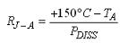 我們需要的是代表實際電路的準(zhǔn)確RJ-A。測量RJ-A有多種方法,一種方法是使用熱關(guān)機閾值,將其設(shè)置為+150℃。要用這種方法測量RJ-A,我們可以讓LM3554在已知功耗(PDISS)下工作,然后慢慢提高環(huán)境溫度直到器件關(guān)機為止。該器件具有一個內(nèi)部標(biāo)志,可以通過I2C兼容接口設(shè)置,在觸及熱關(guān)機閾值時會返回‘1’。使用這種方法獲得的RJ-A將為: