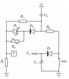 在眾多設(shè)計中,必須保護(hù)適配器免受熱失控(如適配器殼體內(nèi)溫度超過特定值)影響。我們可以通過跟齊納二極管(D10)串聯(lián)一個負(fù)溫度系數(shù)(NTC)電阻(R14)來應(yīng)用簡單的 OTP(如圖 3 所示)。當(dāng)溫度升高時,NTC電阻開始下降,并升高引腳 3 的電壓。當(dāng)引腳 3 的電壓電平達(dá)到 3 V 時,器件就簡單地閂鎖,并要求復(fù)位,然后重啟。