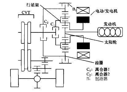 汽車動(dòng)力傳動(dòng)系統(tǒng)采用傳統(tǒng)的內(nèi)燃機(jī)和電動(dòng)機(jī)作為動(dòng)力能源,通過混合使用熱能和電能兩套系統(tǒng)開動(dòng)汽車。在低速小功率運(yùn)行時(shí)可以關(guān)閉發(fā)動(dòng)機(jī),采用電動(dòng)機(jī)驅(qū)動(dòng);而高速行駛時(shí)用內(nèi)燃機(jī)驅(qū)動(dòng);通過發(fā)動(dòng)機(jī)和電動(dòng)機(jī)的協(xié)同工作模式,將車輛在制動(dòng)時(shí)產(chǎn)生的能量轉(zhuǎn)化為電能,并積蓄起來成為新的驅(qū)動(dòng)力量.從而在不同工況下都能達(dá)到高效率。一般上有串聯(lián)式、并聯(lián)式、混聯(lián)式和復(fù)合式4種布置形式。