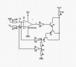 顯示模塊主要實現(xiàn)的功能是顯示設(shè)置的電流輸出值和其它人機交互信息。本部分可以采用七段數(shù)碼LED顯示器,顯示數(shù)字、簡單字母和小數(shù)點等信息,但由于其顯示信息單一,人機交互不友好,本文采用字符型液晶顯示屏LCDSMC1602A模塊。該模塊具有輕薄短小、低壓微功耗、體積小、無輻射、平面直角顯示及影像穩(wěn)定不閃爍等優(yōu)點,且可視面積大、面效果好、分辨率高、抗干擾能力強,適合用于顯示字母、數(shù)字、符號等信息,而且不需要擴展過多外圍電路,可由單片機直接進行控制輸出顯示。電壓-電流轉(zhuǎn)換模塊由精密運放與三個晶體管組成的達林頓管電路構(gòu)成。轉(zhuǎn)換電路利用晶體管平坦的輸出特性和深度負反饋電路使輸出電流穩(wěn)定,如圖2所示,此V/I轉(zhuǎn)換電路的帶負載能力強,電流輸出范圍達0~3A。輸出電流Io經(jīng)反饋電阻Rf得到一個反饋電壓Vf,Vf= V11-V12,通過R5、R6加到運算放大器的兩輸入端,設(shè)運放兩端的電為V1、V2,Vi由單片機DAC輸出。因為理想運放的輸入電流約等于零,且 V1=V2,則: