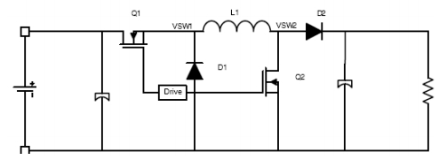 四開關非反相降壓-升壓有兩種操作模式,即降壓模式和降壓-升壓模式。在降壓模式下,轉(zhuǎn)換器產(chǎn)生輸入電壓脈沖,它經(jīng)過 LC 濾波來產(chǎn)生一個較低的直流輸出電壓。輸出電壓可以通過修改相對于開關周期或開關頻率的導通時間來改變。