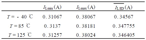 表2 Vin = 12V 情況下三種環(huán)境溫度下的驅(qū)動電流