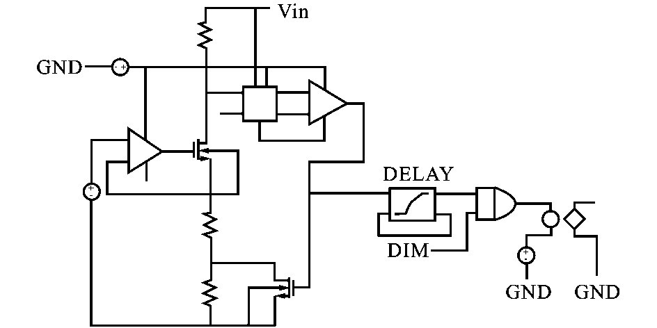 文中實現(xiàn)了一種簡單的滯流控制模塊,通過模塊內(nèi)部自建滯環(huán)比較電壓, 結(jié)合DIM 控制端的PWM 信號控制功率開關(guān)管的通斷,實現(xiàn)對L ED 的恒流控制。