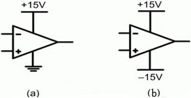 給一個(gè)運(yùn)算放大器供電有兩種常見(jiàn)方法。第一種也是最簡(jiǎn)單的一種方法是使用一個(gè)單一正電源,如圖1(a)所示。第二種方法是使用一個(gè)分離(雙)電源(如圖1(b)所示),其同時(shí)具有一個(gè)正電壓和一個(gè)負(fù)電壓。這種分離電源在許多模擬電路中都非常有用,因?yàn)樗试S包括零電壓電位的輸入信號(hào)或者在正與負(fù)之間搖擺的輸入信號(hào)。