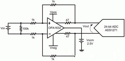 由于運(yùn)算放大器的PSRR進(jìn)一步降低了電源的微小變化,因此您可能會(huì)錯(cuò)誤地得出如下結(jié)論:電源電壓的微小變化在系統(tǒng)中影響極小或者沒(méi)有影響。作為一個(gè)定量舉例,我們可對(duì)一個(gè)全差動(dòng)運(yùn)算放大器進(jìn)行分析,其將信號(hào)緩沖至一個(gè)24位ADC。