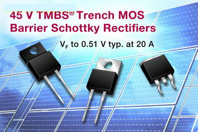 Vishay發(fā)布12個(gè)采用不同封裝的45V TMBS® TrenchMOS勢(shì)壘肖特基整流器器件可用于光伏太陽(yáng)能電池旁路保護(hù),具有10A~40A的寬額定電流范圍,在20A電流下的典型VF低至0.51V。