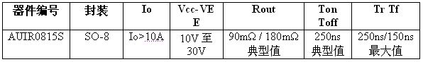 全球功率半導(dǎo)體和管理方案領(lǐng)導(dǎo)廠商國際整流器公司 (International Rectifier,簡稱IR) 近日推出車用IC ── AUIR0815S,具備超過10 A 的高輸出電流,能夠驅(qū)動逆變器級的大型 IGBT 和 MOSFET,適用于混合動力汽車和電動汽車中的動力系統(tǒng)。