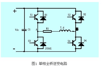 全橋逆變器的主電路圖見圖1。由于控制方式的不同,它可以有很多種工作方式,常用的工作方式為: