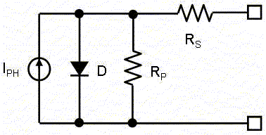 并聯(lián)電阻(RP)代表實(shí)際太陽(yáng)能電池中出現(xiàn)的微小泄漏電流,Rs代表連接損耗。隨著負(fù)載電流增加,由太陽(yáng)能電池所產(chǎn)生的大部分電流被分流到二極管并進(jìn)入負(fù)載。對(duì)于大多負(fù)載電流的數(shù)值,這只對(duì)輸出電壓有很小的影響。
