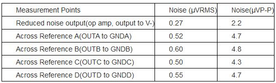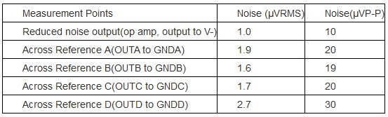 表1. 圖1電路使用MAX6037 2.5V電壓基準源時所測得的噪聲電壓
