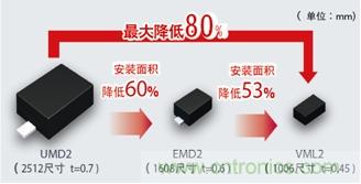 此次,產(chǎn)品陣容中新增了更加小型的VML2封裝(1.0×0.6mm)。通過(guò)這些產(chǎn)品,將非常有助于便攜設(shè)備節(jié)省空間。
