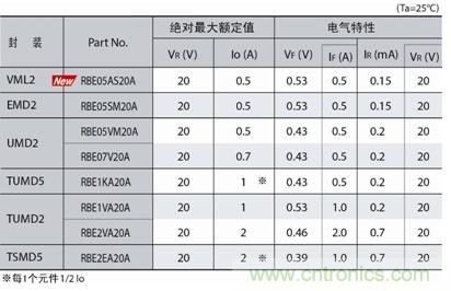 業(yè)界頂級(jí)的低VF,以小型封裝可確保大電流。