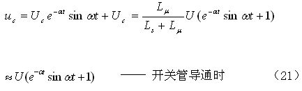 我們從(21)式以及圖3和圖4可以看出:當電源開關管Q1導通時,分布電容Cs兩端電壓(也是勵磁電感l(wèi)v兩端的電壓),由一個最大振幅約等于輸入電壓U的正弦振蕩電壓與一個分布電容Cs兩端電壓的半波平均值