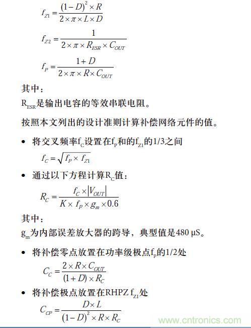 傳遞函數GVD(s)有一個右半平面零點(RHPZ) fZ1、一個零點fZ2和一個極點fP。零點和極點的值分別為: