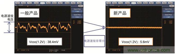 這種模塊需要內部電路、I/O、RAM、收發器用等共8種電壓。以內部電路用VCCINT為例,電壓精度為±3%。