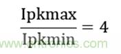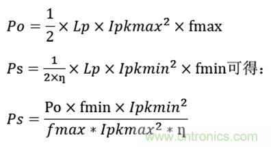 由上式可得,待機功耗的大小跟變壓器電感量大小,變換器具體的峰值電流無關,只與設計的最高工作頻率與芯片最低工作頻率比以及最大設計峰值電流和最小峰值電流比有關。根據(jù)芯片規(guī)格書得: