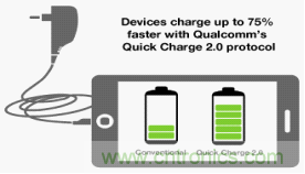 如今人們的手機和平板電腦等移動設備的屏幕越來越大,設備耗電量的越來越高的情況,市場要求電源制造商須在更小的產品體積當中提供更大功率的充電功能。目前,最新的AC/DC適配器解決方案是基于高通Quick Charge 2.0協議的快速充電解決方案。作為最新的USB電池充電技術,它使支持Quick Charge 2.0的被充電設備比傳統的USB充電方式快至75%。