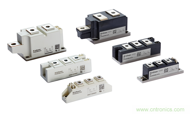 焊接模塊不僅封裝尺寸較小(不超過50mm),而且市場價格比相關壓力接觸類型低 25%左右(取決于模塊/應用),具有明顯的成本優勢。對于標準驅動或UPS等不要求壓力接觸的高魯棒性應用,小型的PowerBlock焊接模塊是理想的選擇。而對于軟啟動器或靜態開關等以高魯棒性作為重要標準的應用,英飛凌提供壓力接觸的最佳解決方案。例如,直接在惡劣的電網電壓條件下運行的輸入整流器應用對耐用性的要求會隨著模塊尺寸的增加而提高,因此需要采用高度穩定的壓力接觸技術。