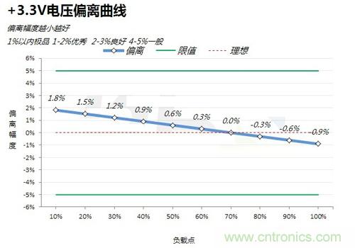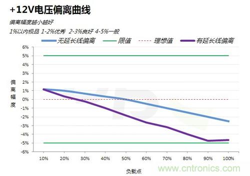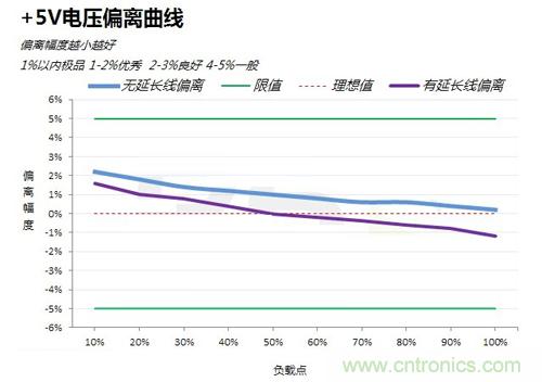 然后看下電源電壓偏離對比,可以發現在加入了延長線之后,電源的電壓也有一定程度的影響。其中+12V影響較大,+5V和+3.3V影響較小。