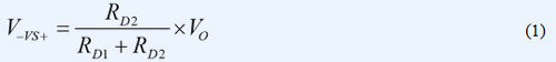 圖4中RD1和RD2構(gòu)成標(biāo)準(zhǔn)反饋網(wǎng)絡(luò)--一個(gè)簡(jiǎn)單的電阻分壓器,可在ADC檢測(cè)輸出電壓之前對(duì)其進(jìn)行調(diào)節(jié)。 檢測(cè)電壓為: