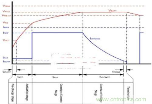 充電開始為預充階段,以檢查電池狀況是否良好。在此階段中,通常給電池提供電池容量5%到15%的少量電流,如果電池電壓上升到2.8V以上,則認為電池狀況良好,可以進入到激活階段。在此階段中,給電池提供相同的電流,但會持續更長的時間。當電池電壓上升到3V以上,則啟動快充,并提供等于或低于電池容量的恒定電流。