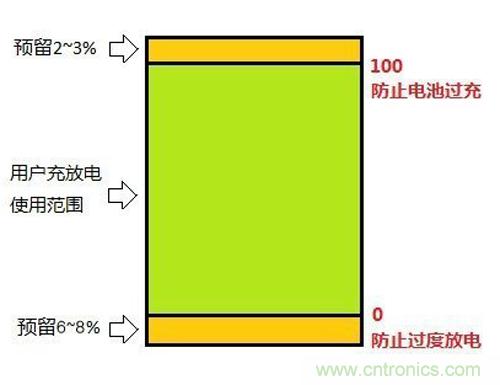 每塊電池在出廠時都會設定一個安全值。這是從電池安全的角度考慮,電池的初始電量中,生產(chǎn)廠家會保留一部分電量不被使用。之所以這樣做,完全是出于安全的考慮。電池不宜過度的充放電,如果電池被過度充電,極易誘發(fā)事故,最典型的例子就是新聞上常有的手機使用劣質充電器充電導致電池過充而引發(fā)的爆裂事故。同樣,如果電池過度的放電,超過電池放電的終止電壓值,還繼續(xù)放電時就可能會造成電池內壓升高,正、負極活性物質的可逆性遭到損壞,使電池的容量產(chǎn)生明顯減少。因此,電池設定的“安全冗余”同時也是為了保護電池的正常壽命。
