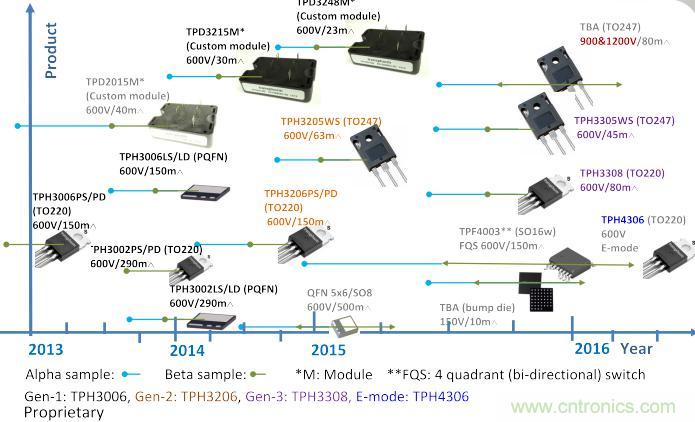 Transphorm依據基本發展路線圖進行開發,首先是合格的600 V器件和1000V器件。Transphorm的研究和開發還在繼續,現在推出了600V的擴展系列,采用更低的R(ON)設備和高功率封裝(含模塊),然后是繼150V器件之后的1200 V器件。據Eric透露,今年會推出900V和1200V的產品,低壓方面會提供150V的產品。據悉,未來Transphorm還將推出代替Cascode的E-Mode創新結構技術,將會把當前結構中存在的不利因素解決掉,實現更卓越的功率器件性能。將提供更大功率的產品,從2014年推出第一顆TO240,電流從30、40,逐步往60、70、80的方向發展。
