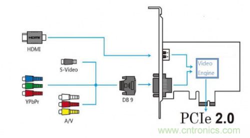 圖一是目前視頻采集卡非常主流的硬件架構,Vedio Engine包括視頻編解碼器和FPGA,協議以及算法都由FPGA來實現,后面通過FPGA的Serdes接口送出到電腦,采用X4 PCIE2.0總線協議。世強市場經理表示:PCIE總線發展到現在經歷了3代,分別是GEN1 2.5GT/S, GEN2 5GT/S, GEN3 8GT/S,如果設置成X4,GEN2就可以滿足20GT/S的帶寬,基本可以滿足目前主流高清帶寬需求,所以主流的視頻采集卡都采用PCIE2.0。