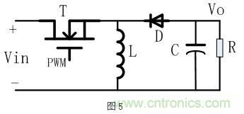 Buck-Boost電路拓?fù)洌袝r(shí)又稱為Inverting,其典型的電路結(jié)構(gòu)如下圖5所示: