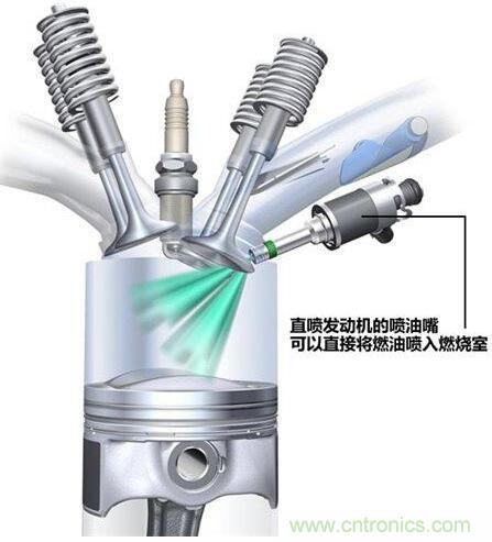 缸內直噴,顧名思義就是直接將燃油噴入氣缸內與空氣混合的技術。與傳統歧管噴射的意義不同,缸內直噴將噴射壓力更進一步提高,使燃油霧化更加細致,真正實現了精準地按比例控制噴油并與進氣混合,同時消除了缸外噴射的缺點。在發動機低轉速低載荷時,延遲噴射,在活塞進行壓縮沖程最后階段時噴射,利用空氣渦流,使燃油聚集在火花塞附近,分層燃燒實現節油的目的,但當發動機轉速上去,載荷上去時,還是要提前噴射,在吸氣沖程就將燃油噴射進去,使油氣均勻混合燃燒。