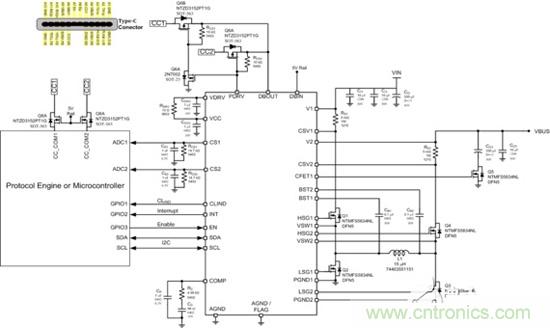 因此,要想滿足USB type-c和Quick Charge這兩個(gè)標(biāo)準(zhǔn),就需要一款能夠根據(jù)用電設(shè)備的要求進(jìn)行電壓調(diào)節(jié)的電源控制器。單電感H橋升降壓電源控制器 NCP81239就是非常理想的選擇。它可以適配寬輸入電壓范圍和寬輸出電壓范圍,芯片集成的I2C接口可和外部的微控制器(MCU)配合進(jìn)行輸出電壓的步進(jìn)調(diào)整,且可在同一個(gè)type-c端口實(shí)現(xiàn)多種快充協(xié)議,還能對接蘋果LighTIng 接口快充協(xié)議、三星接口快充協(xié)議等等。