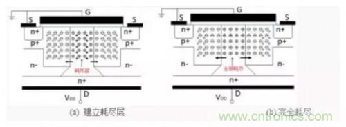 注意到,P+和外延層N-形成PN結(jié)也是反向偏置形,有利于產(chǎn)生更寬的耗盡層,增加垂直電場。