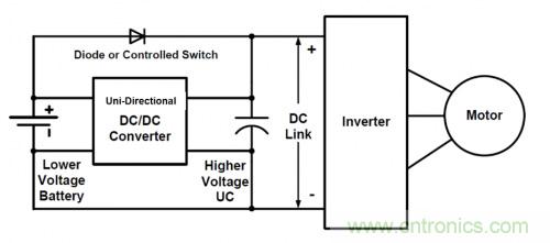 針對(duì)此類系統(tǒng)設(shè)計(jì),已有多種不同的基礎(chǔ)性拓?fù)浣Y(jié)構(gòu),如采用并行電路的電池和超級(jí)電容,或雙向變壓器,其中超級(jí)電容位于初級(jí),電池位于次級(jí),或采用單向和雙向變壓器組合。所有這些拓?fù)浣Y(jié)構(gòu)的共同點(diǎn)是復(fù)雜程度較高,因此研發(fā)周期較長(zhǎng)、成本壓力較大。