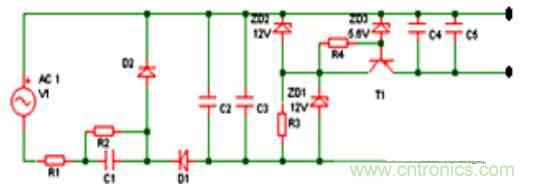 下文介紹的是一種新穎的電容降壓型直流穩壓電源電路。