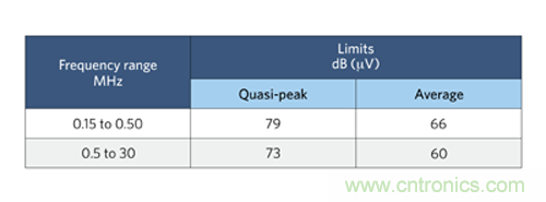 圖 1:CISPR 22 標(biāo)準(zhǔn) B 類傳導(dǎo) EMI 規(guī)范。