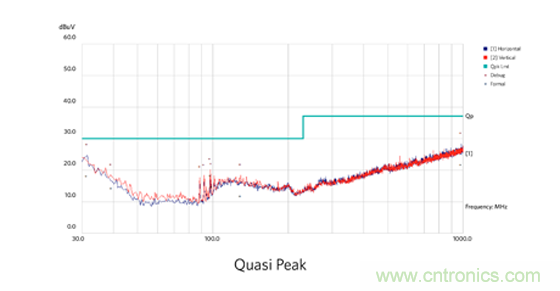 圖 3:CISPR 22 標(biāo)準(zhǔn) B 類輻射 EMI 規(guī)范。