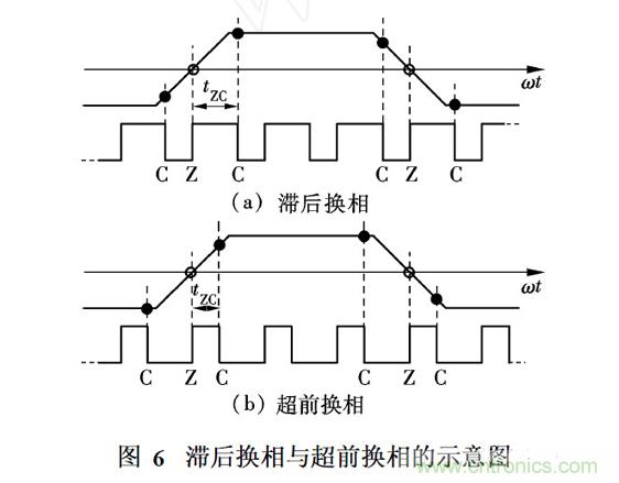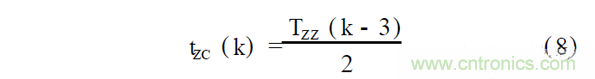 式中, TZZ ( k - 1)為第k - 1次過零點(diǎn)到第k次過零點(diǎn)的時間; tZC ( k)為第k次過零點(diǎn)到第k次換相點(diǎn)的延遲時間.
