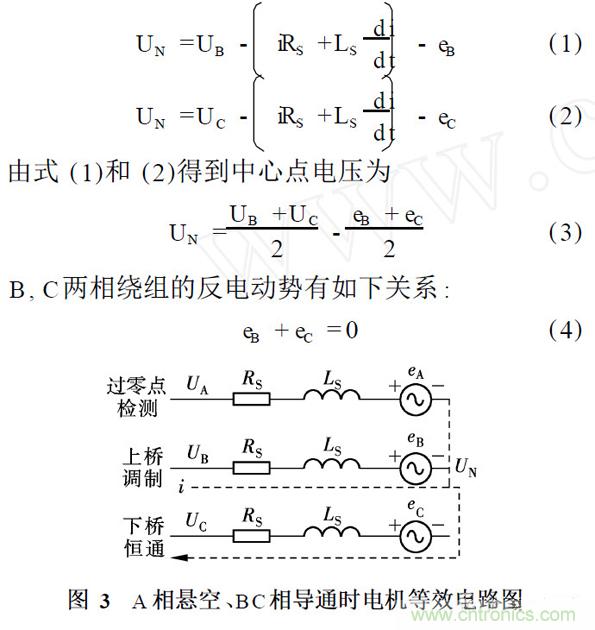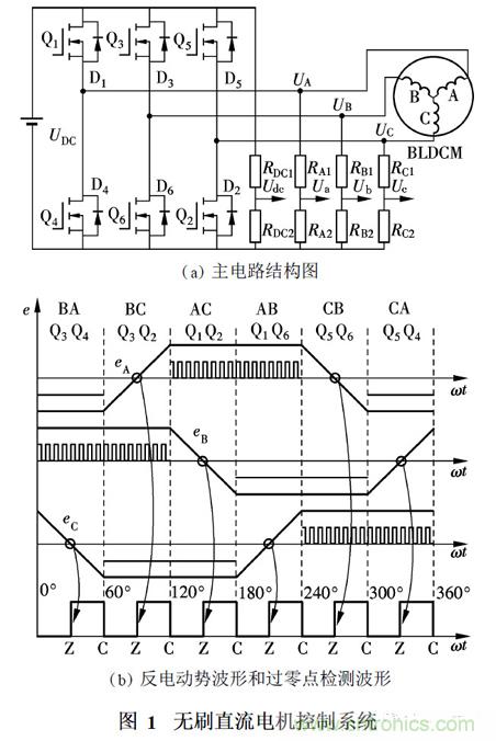 反電動勢過零點(diǎn)檢測方法簡單準(zhǔn)確,使用軟件算法判斷反電勢過零點(diǎn). 硬件電路只要選擇阻值和功率都合適的電阻用于分壓,不需要重構(gòu)電機(jī)中心點(diǎn),也不需要低通濾波器,信號沒有相位延時,也不采用比較器來檢測過零點(diǎn). 硬件電路結(jié)構(gòu)簡單, 適合低成本應(yīng)用.
