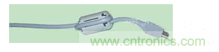 將一個鐵氧體磁環套在導線或電纜上就構成了一介簡單、經濟、便于安裝的濾波器,如圖4所示。鐵氧體的作用是將導線周圍的磁場集中起來,從而使導線的電感增加數百倍。鐵氧體扼流圈的最大好處是它既不需要重新設計電路,也不需要重新設計結構,因此在設備的改進中廣泛應用。生產廠家提供需多種不同內徑規格的分體式鐵氧體,一般內徑從5mm~13mm不等。當信號線和回流線同時穿過鐵氧體時,鐵氧體對信號(差