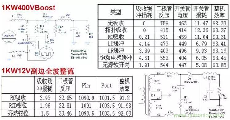 無源無損軟開關電路效率明顯高于其他緩沖吸收方式,與有源軟開關電路效率相差無幾。因此只要能夠?qū)崿F(xiàn)無源軟開關的電路,可不必采用有源軟開關。