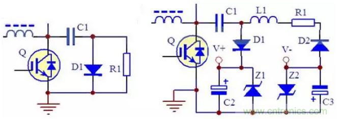 RC吸收是無方向吸收,因此RC吸收既可以用于單向電路的吸收,也可用于雙向或者對稱電路的吸收。