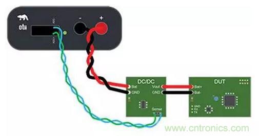 Otii工具還支持使用SENSE+和SENSE-輸入,通過四端子檢測方法測量輸入和輸出電壓。這里不討論這種方法,原因是電流相當低,而且連接Otii所用的電纜很短,電阻很小。