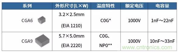 車載等級MLCC(積層陶瓷貼片電容器)CGA系列C0G特性/NP0特性