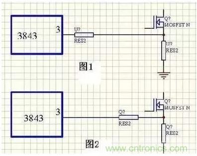 控制部分要注意:高阻抗弱信號(hào)電路連線(xiàn)要盡量短如取樣反饋環(huán)路,在處理時(shí)要盡量避免其受干擾、電流取樣信號(hào)電路,特別是電流控制型電路,處理不好易出現(xiàn)一些想不到的意外,其中有一些技巧,現(xiàn)以3843電路舉例見(jiàn)圖(1)圖一效果要好于圖二,圖二在滿(mǎn)載時(shí)用示波器觀測(cè)電流波形上明顯疊加尖刺,由于干擾限流點(diǎn)比設(shè)計(jì)值偏低,圖一則沒(méi)有這種現(xiàn)象、還有開(kāi)關(guān)管驅(qū)動(dòng)信號(hào)電路,開(kāi)關(guān)管驅(qū)動(dòng)電阻要靠近開(kāi)關(guān)管,可提高開(kāi)關(guān)管工作可靠性,這和功率MOSFET高直流阻抗電壓驅(qū)動(dòng)特性有關(guān)。