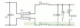 圖4:開關電源交流側EMI濾波器電路