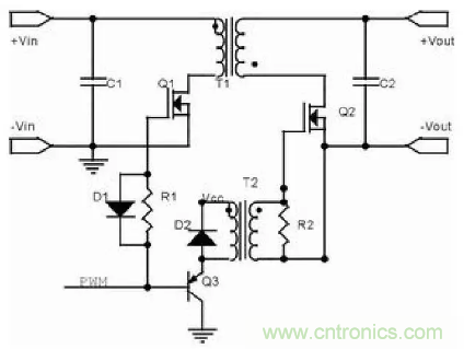 為了這種電路能夠正常運作,必須對同步整流器(SR)加以控制,這是基本的要求。同步整流器是用來取代二極管的,所以必須選擇適當的方法,按照二極管的工作規律來驅動同步整流器。驅動信號必須用PWM控制信號來形成,而PWM控制信號決定著開關型電路的不同狀態。