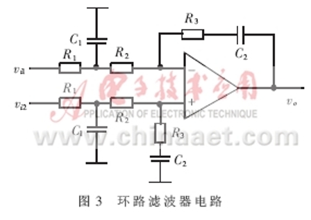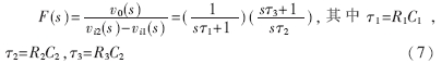環(huán)路濾波器設計——環(huán)路濾波器形式和參數(shù)的選取是整個鎖相環(huán)電路設計與調(diào)試的關鍵。在壓控振蕩器和檢相器設計確定的情況下,環(huán)路濾波器的傳輸函數(shù)直接決定了整個環(huán)路的傳輸函數(shù),從而在很大程度上決定環(huán)路的噪聲性能、捕獲和跟蹤性能等。在鎖相環(huán)路設計中廣泛采用由有源比例積分濾波器組成的高增益二階環(huán)路,因為這種環(huán)路具有無條件穩(wěn)定性,而且有較大相位裕度。但是為了更好地抑制控制線中干擾、提高環(huán)路噪聲抑制性能,在高增益二階環(huán)的基礎上附加一級RC低通濾波器。其電路形式如圖3所示。