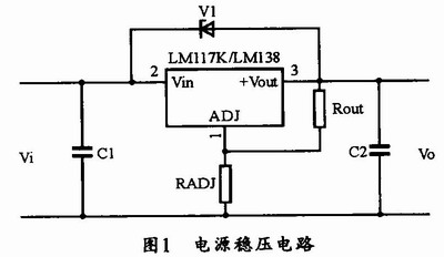 需要說明的是,圖1中的穩壓器管腳電壓差Vo-Vi應在3-35V范圍內,超出范圍將不穩壓;LMll7K的額定電流為1.5A,LMl38K的額定電流為5A;這兩個器件的兩者管腳定義相同;為保證穩壓器正常工作,設計時可選用0.25W電阻ROUT,其值可選120Ω~240Ω。