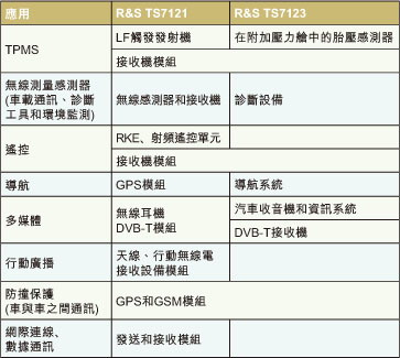 一些更新的應用包括用于確保轎車和卡車安全的胎壓監測系統,以及可靠地實現電視接收的DVB-T接收機。在某些情形下,具備射頻接口的診斷系統已經被安裝在汽車維修中心和應急支援中心。其它應用還包括:用于監測發動機艙溫度、壓力和速度參數的傳感器。